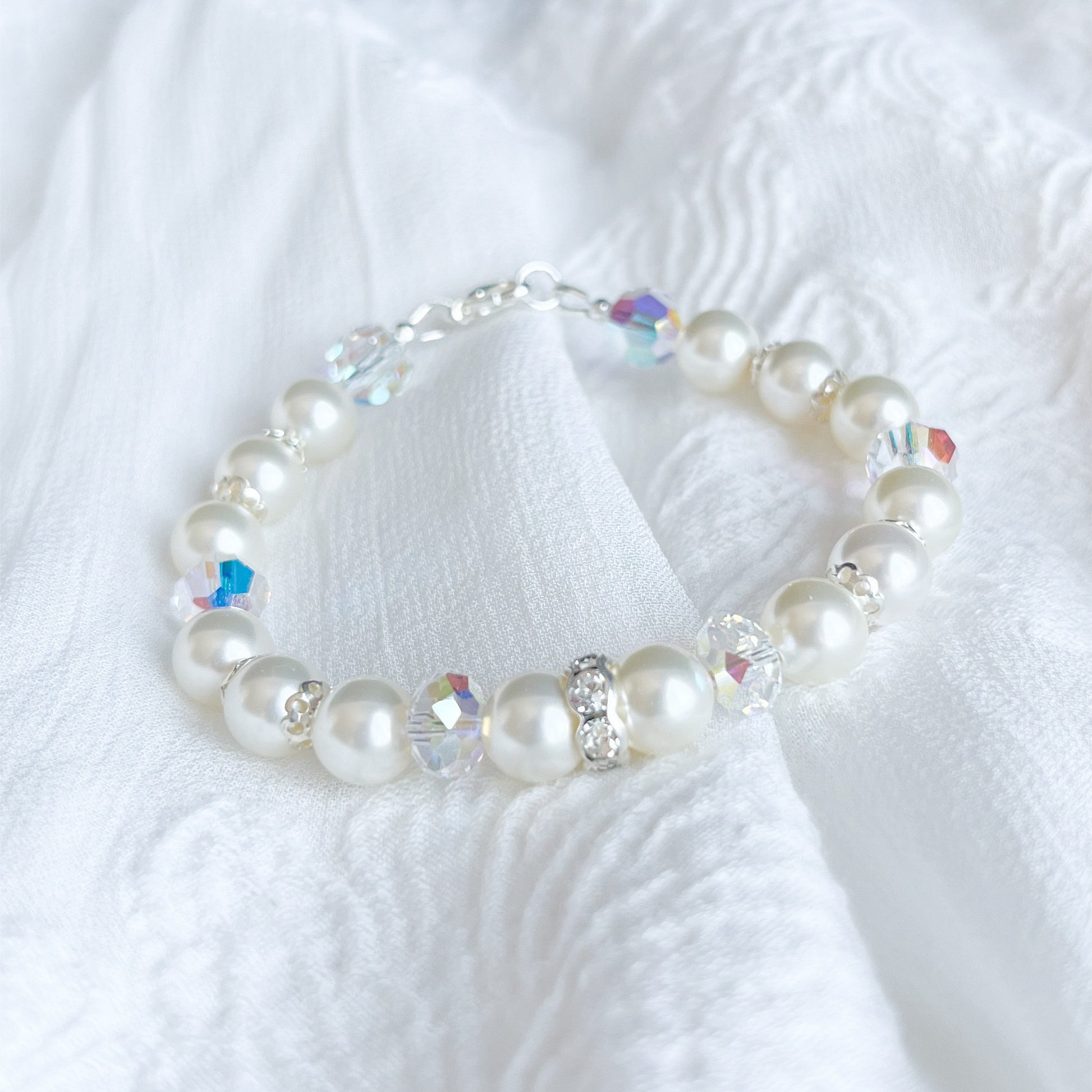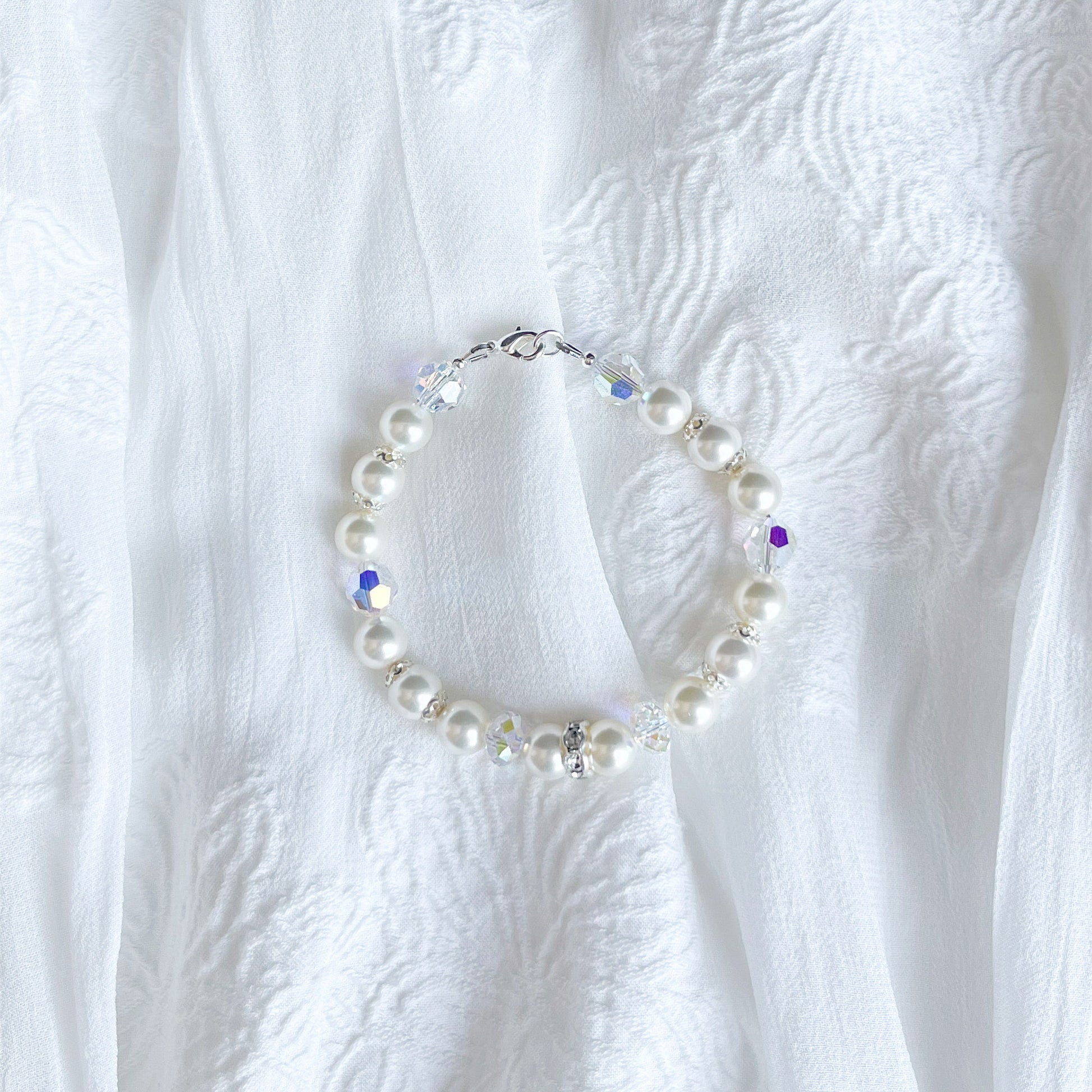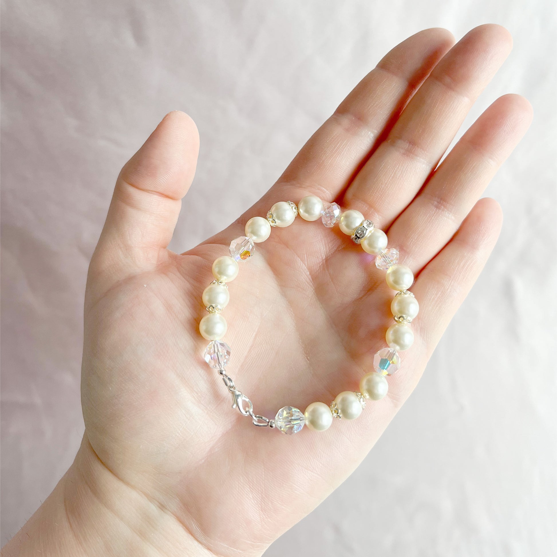 The Amélie Bracelet - Hand-Strung Crystal Pearl Bracelet - Cream