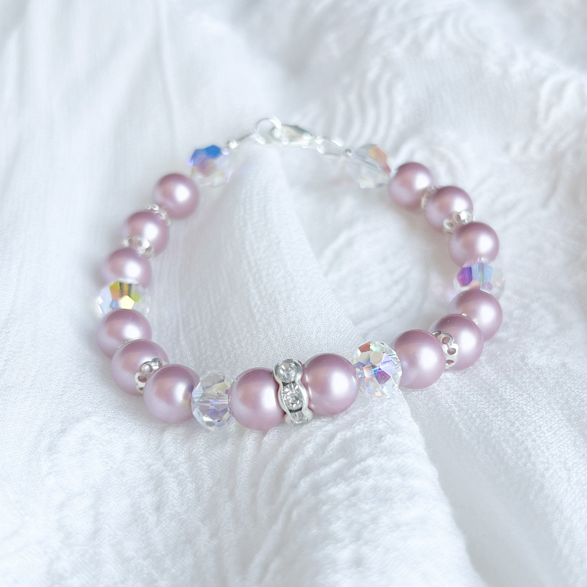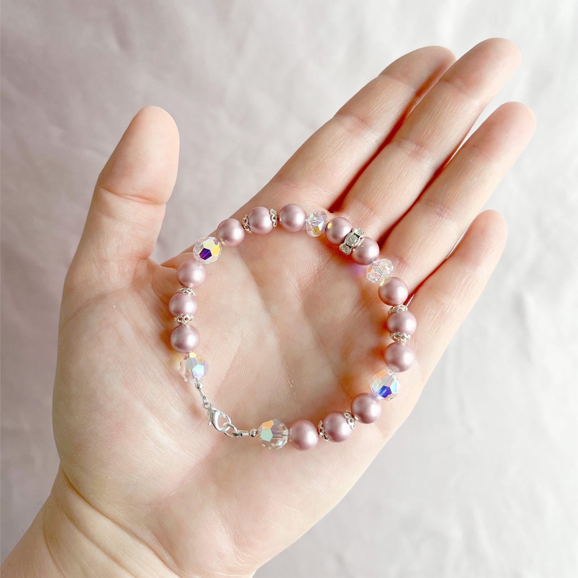 The Amélie Bracelet - Hand-Strung Crystal Pearl Bracelet - Pink Rose