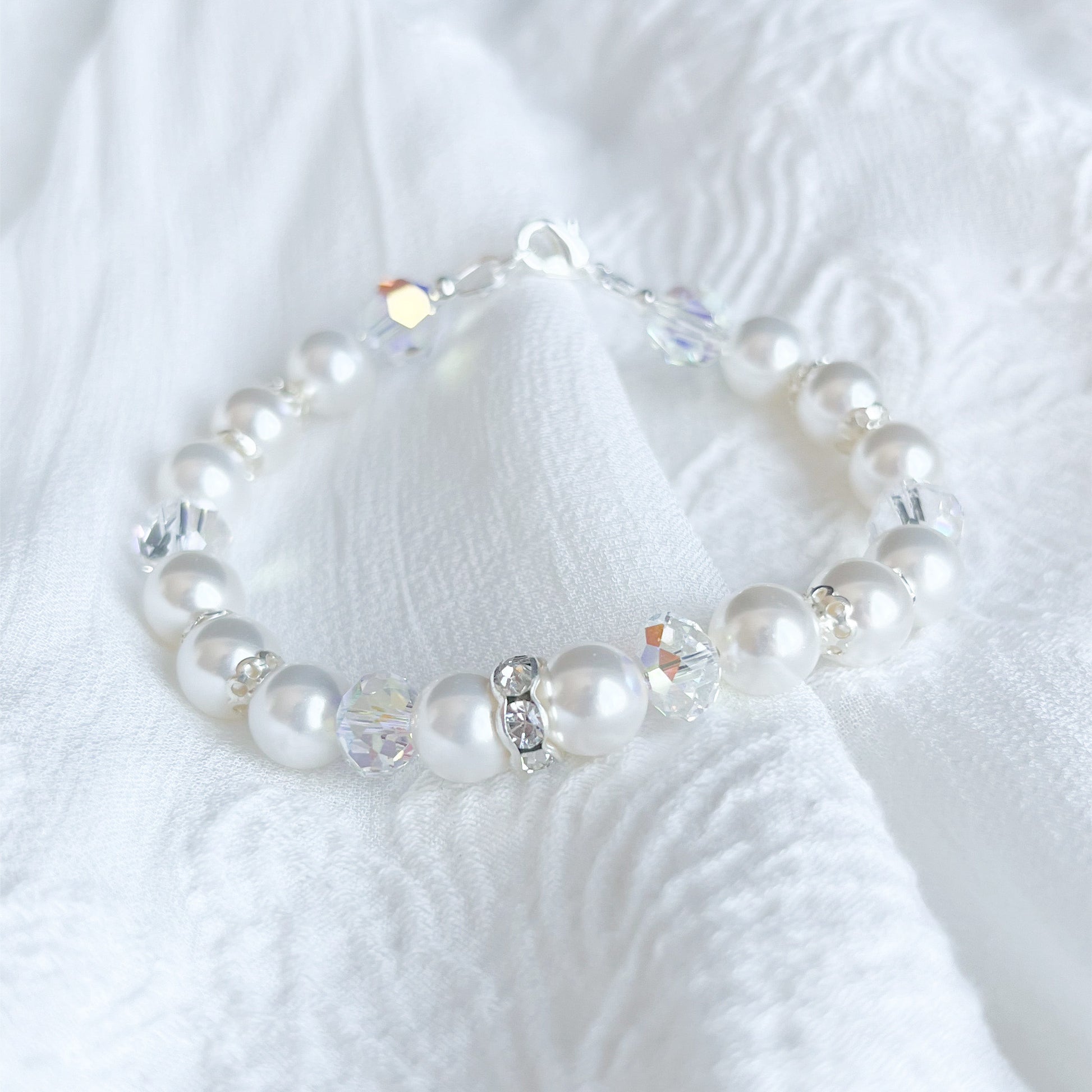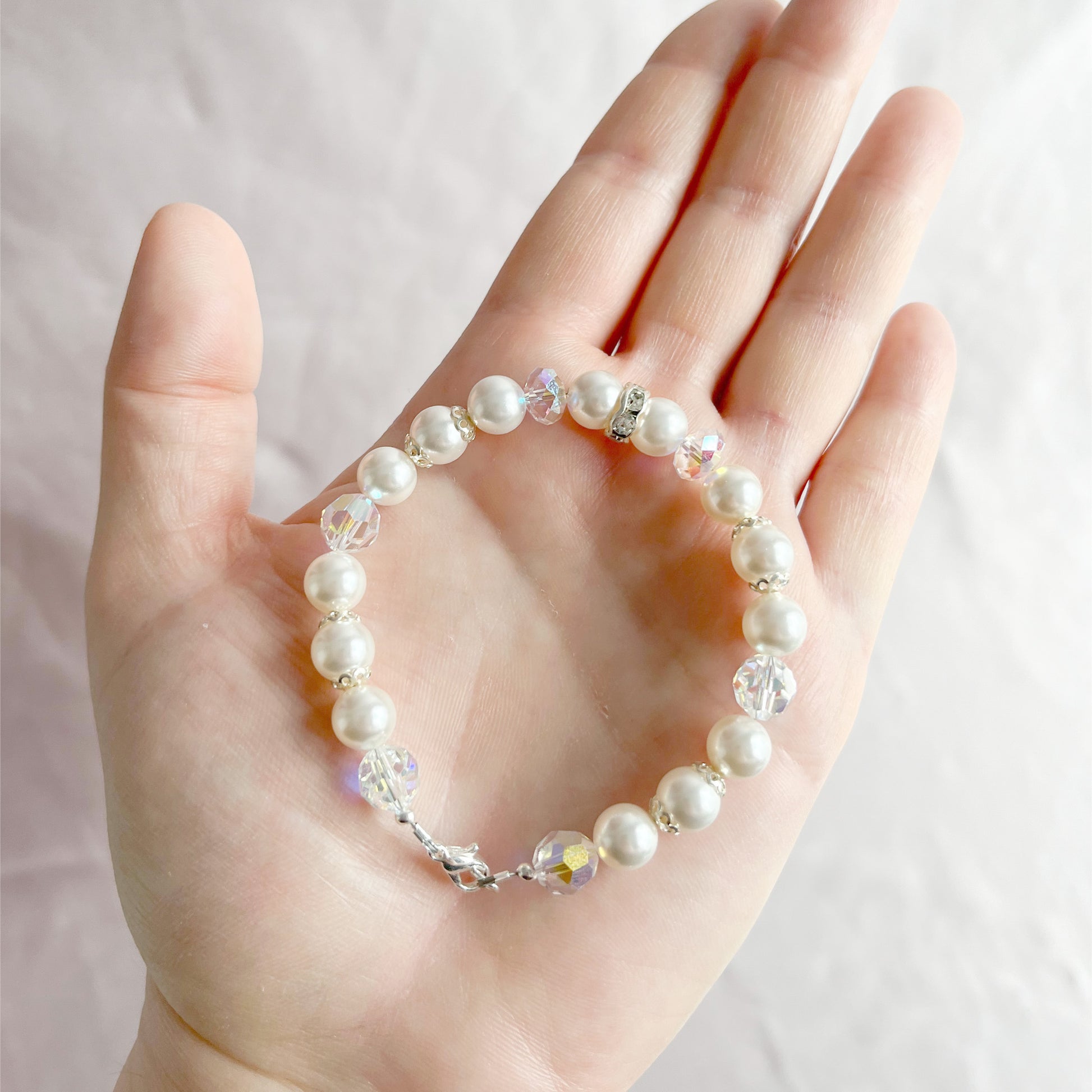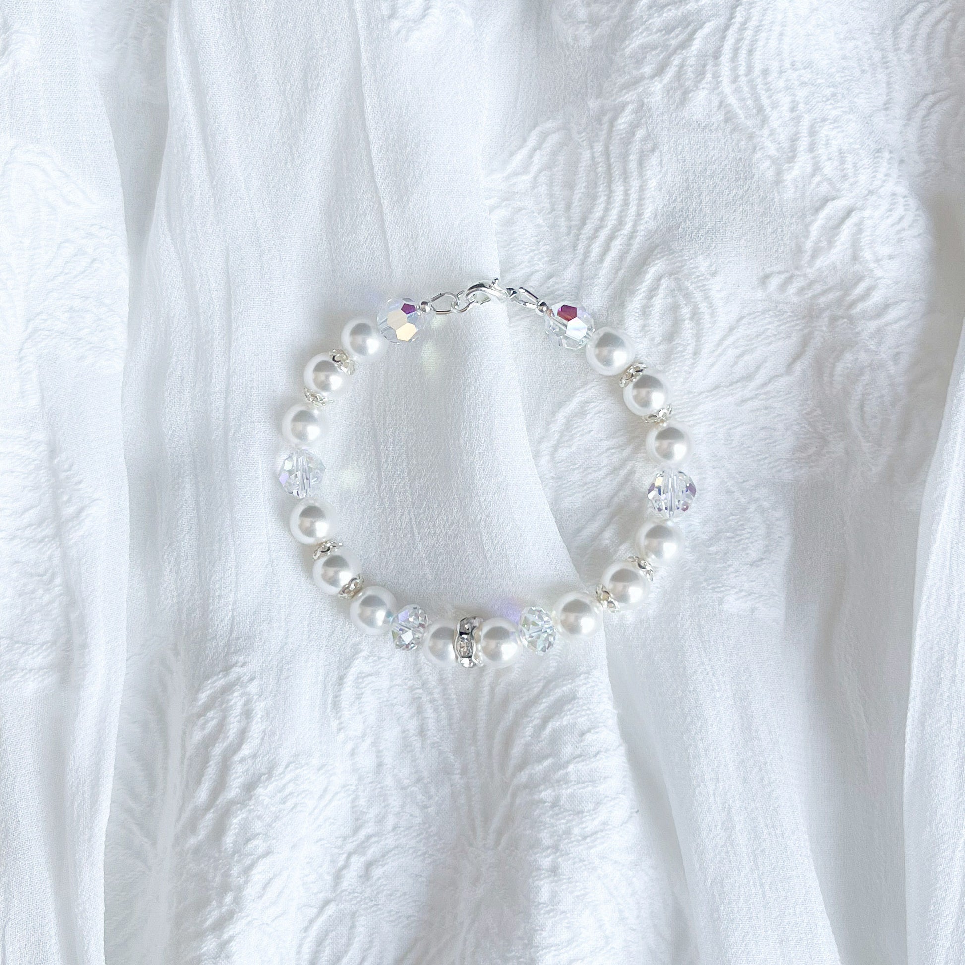 The Amélie Bracelet - Hand-Strung Crystal Pearl Bracelet - White