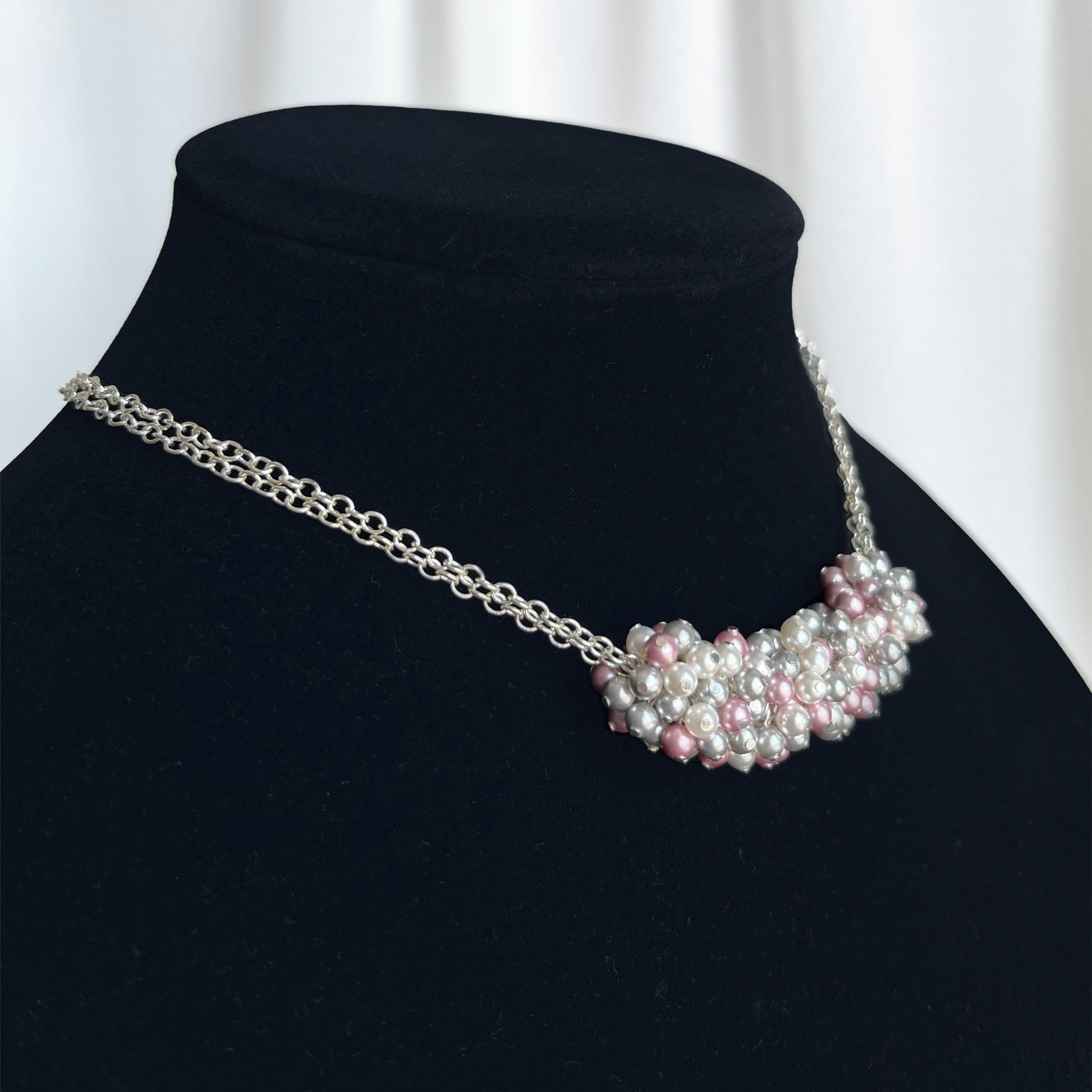 The Genevieve Necklace - Pearl Cluster Necklace - Pink Grey